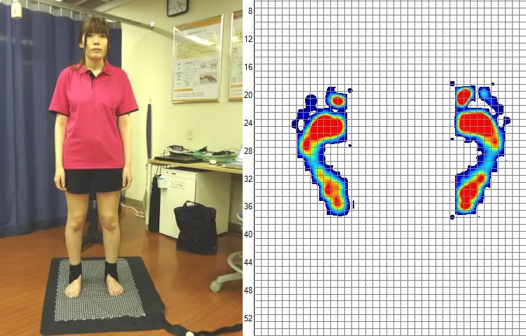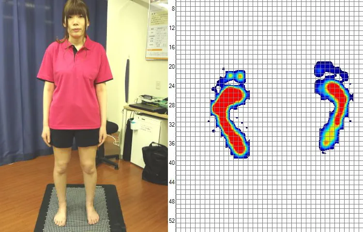 腰と右膝を痛めている人の足圧を測定しました。