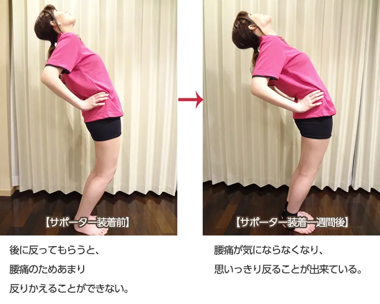 これはサポーター装着により足首が安定し、その結果として腰や膝が保護され、体重を乗せても痛みが出にくくなったためです。